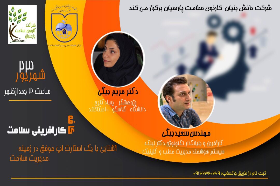 قابل توجه دانشجویان و پژوهشگران حوزه سلامت و علوم پزشکی، رویداد سه شنبه ها با کافه کارآفرینی در شهریورماه با موضوع« انتقال تجربه یک استارت آپ موفق در زمینه مدیریت کلینیک» همراه با پرسش و پاسخ کتبی و شفاهی،در تاریخ 23 شهریور ماه 1400 ساعت 15 برگزار می شود.